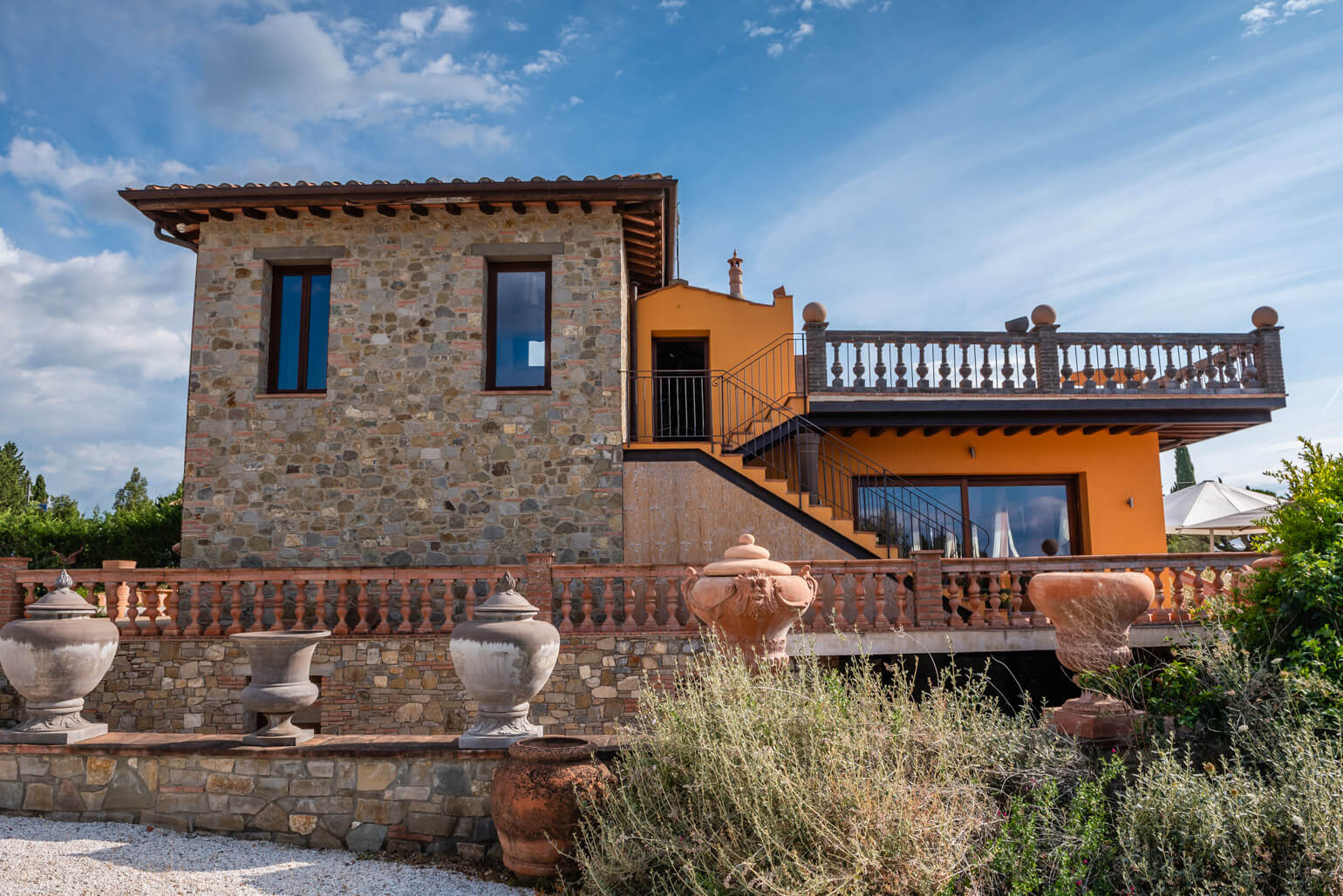 At Giardino di Zago, every event finds its perfect setting, and the panoramic terrace is its most striking feature. Set in a privileged location, this elegant terrace with Impruneta terracotta balustrade overlooks the rolling Florentine hills and the estate's lush garden. adorned with an Impruneta terracotta balustrade, offers breathtaking views of the rolling Florentine hills and the estate’s lush gardens. A view that enchants, elevating every celebration into something truly unforgettable.