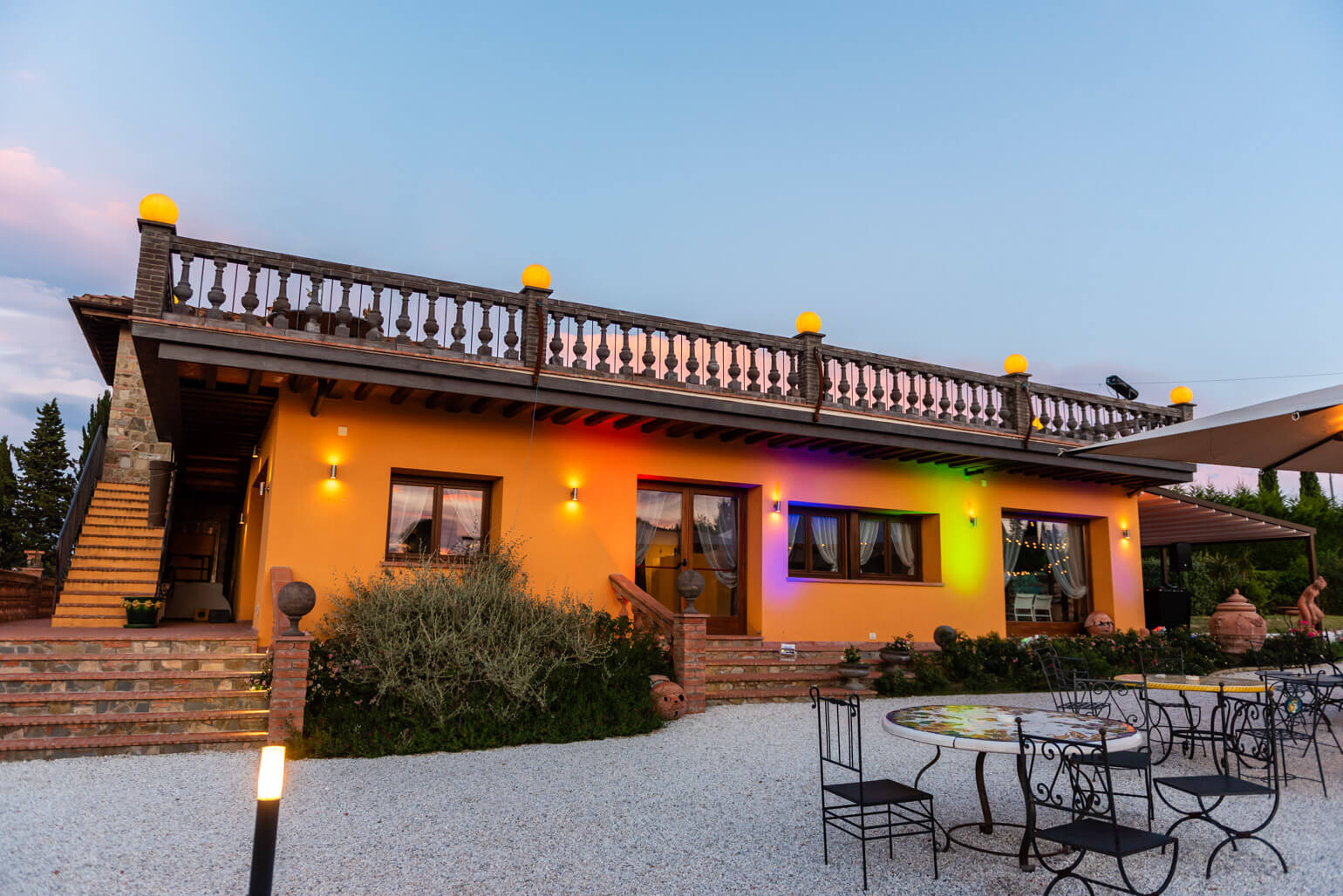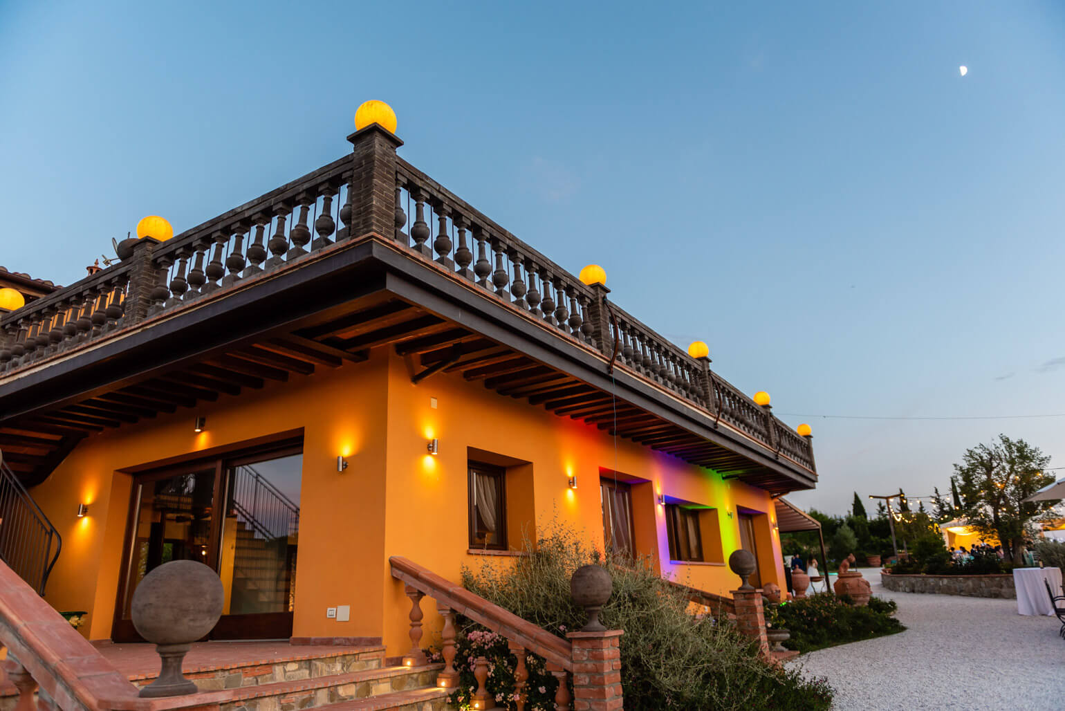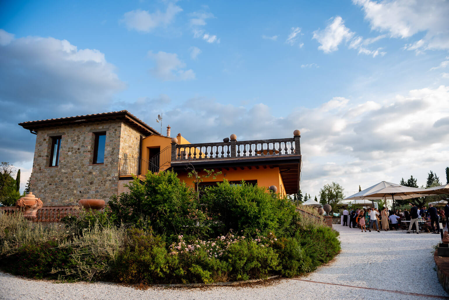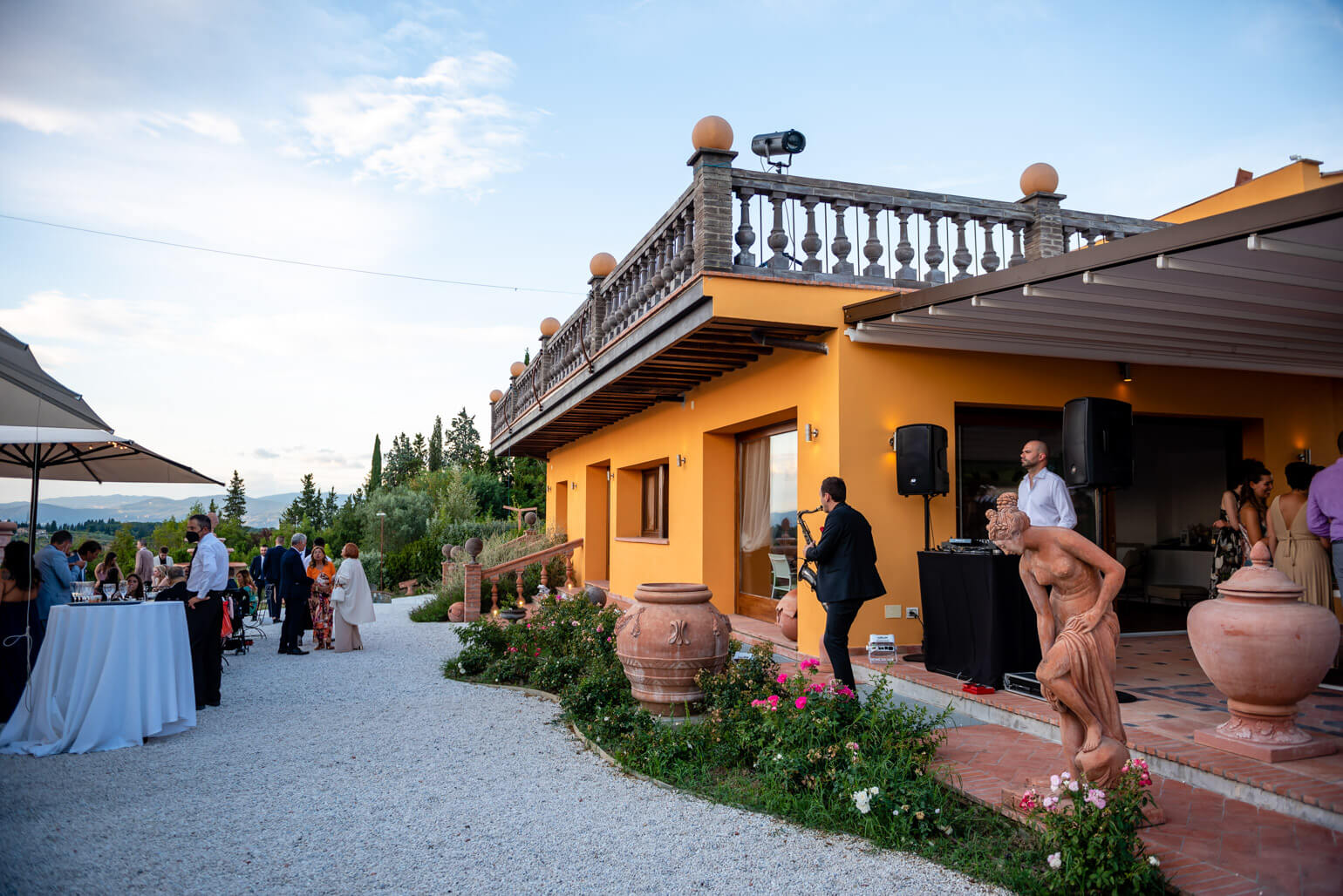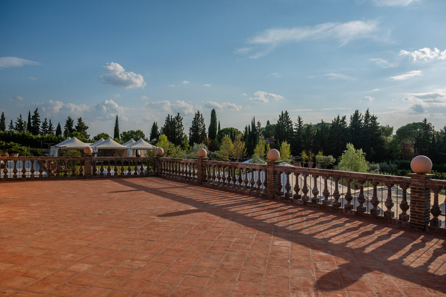 At Giardino di Zago, every event finds its perfect setting, and the panoramic terrace is its most striking feature. Set in a privileged location, this elegant terrace with Impruneta terracotta balustrade overlooks the rolling Florentine hills and the estate's lush garden. adorned with an Impruneta terracotta balustrade, offers breathtaking views of the rolling Florentine hills and the estate’s lush gardens. A view that enchants, elevating every celebration into something truly unforgettable.