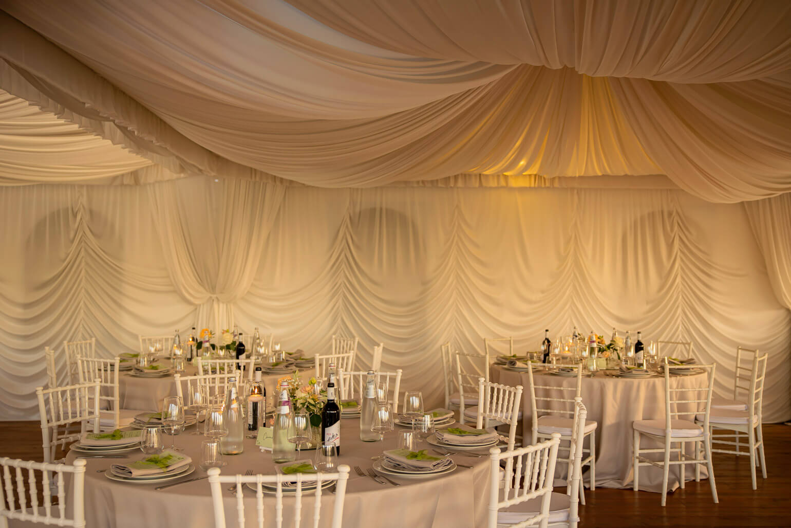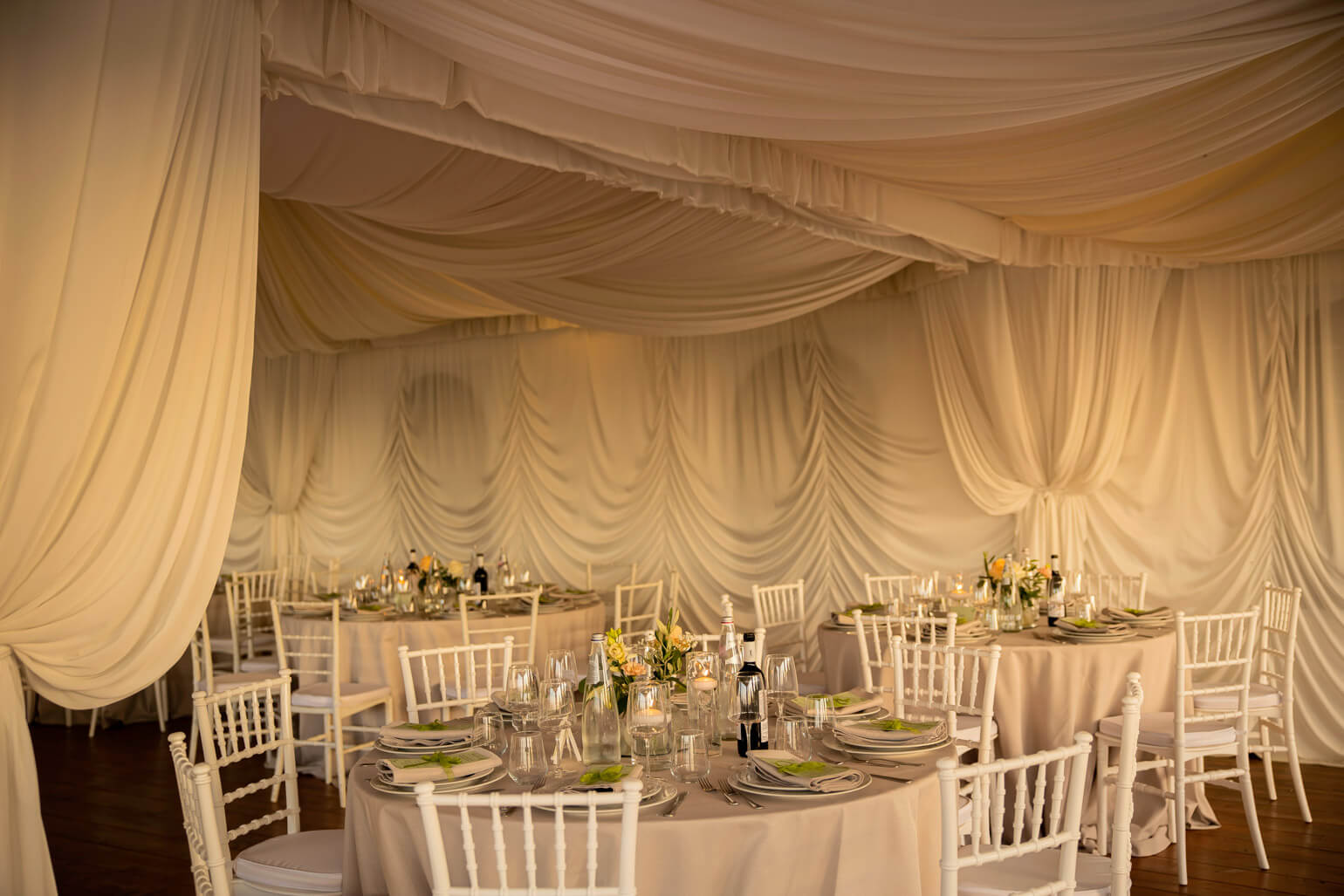 “La tensostruttura sembra il salone di una villa ma con affaccio su un enorme giardino adornato da fiori e luminarie”